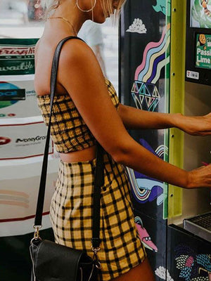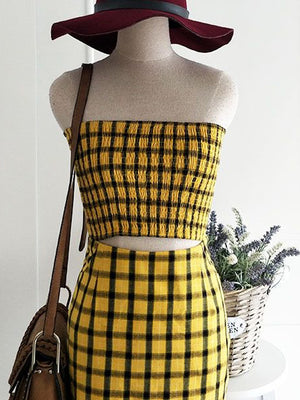 The prettiest look to have! A smocked feature for the top with plaid all over! Summer 2 Pc set with matching top & skirt. Definitely adds to any wardrobe, matched perfectly with laced-up boots for an on-point stylish outfit.