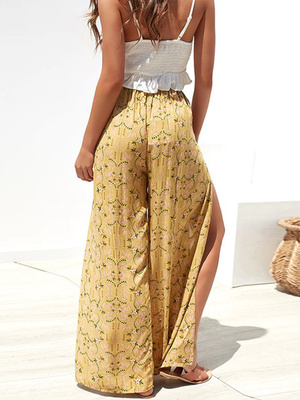 You will be so ready for summer with these gorgeous boho split beach pants! These high-waist flowy trousers have an elastic waistband and a wide leg, making them super comfy and wearable over anything. And the retro-style floral print makes for a great vintage look.