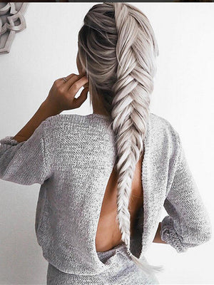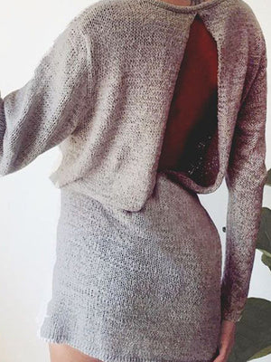 Made from light knit fabric in grey hue, this dress is comfort and style all in one! It features a crew neckline and mini length, with a sexy open back look. Perfect with thigh high boots for a gorgeous Fall outfit!
