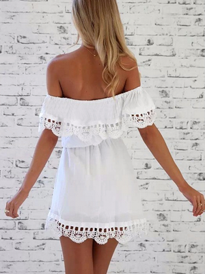 A pretty chiffon piece to have this season! This gorgeous dress is full of sass with its off shoulder design and a relax silhouette. Perfect for this Season with lace up sandals for an elegant chic look