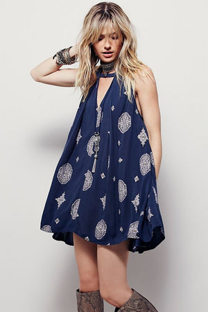 One of the most beautiful print! This sleeveless version is printed in a swing tunic shape and features a plunging V-neck and a button closure on the neckline. Dropped armholes and retro design.