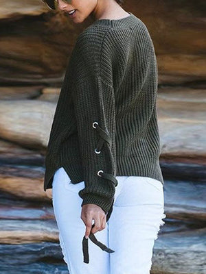 One of our favorites to date, Phoebe Sweet Lace Sleeves Knit Sweater is made from plush knit cotton which is perfect for cooler days. In a relaxing fit with chic lace-up sleeves design. This is one sassy piece to have, perfectly match with tights or jeans for an on-trend outfit!