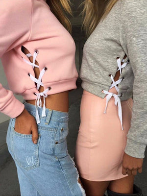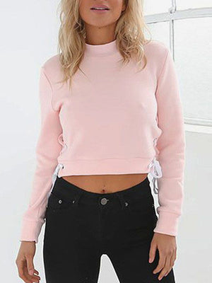Throw-on-and-go appeal. This side lace up sweater brings downtime downtown. The crop length with side lacing provides a sassy feminine appeal and offers up a fresh take on sports-luxe, when teamed with tights or denims.