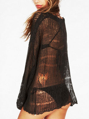 Get a little distressed. The Say Yes to the Distress Sweater comes in white knit and features V-neckline, relaxed silhouette, distressed through bottom sides, and loose hem.