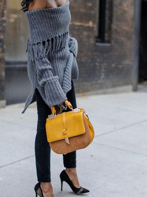 The shape of the season goes luxe with plush fabric and a sassy off shoulder look, with ultra long sleeves to keep cozy. Perfectly matched with denim for a functional & stylish outfit!