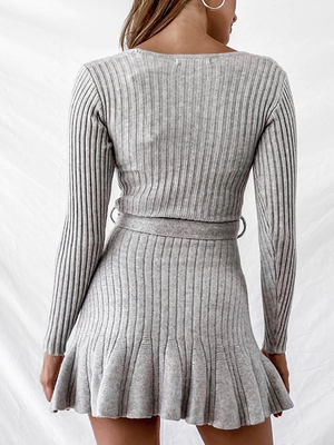 Make the most of your vacation in the Mia Tied Waist Knit Ruffle Dress! This cute little knit dress, shaped by knitted fabric, has a v-neck cut design and fitted bodice (with waist tie) ends with a breezy layered ruffle skirt.