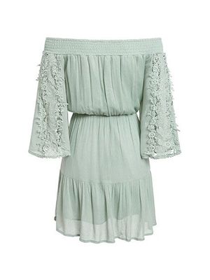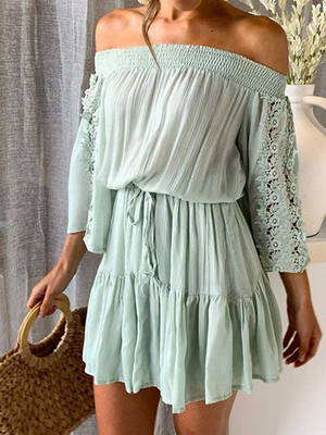 Every modern lady ought to have a piece as chic as the Sherry Off Shoulder Lace Trim Dress in her closet! Lightweight cotton fabric shapes this dress with an off shoulder look and lace sleeves design. Perfect piece for downtime downtown!